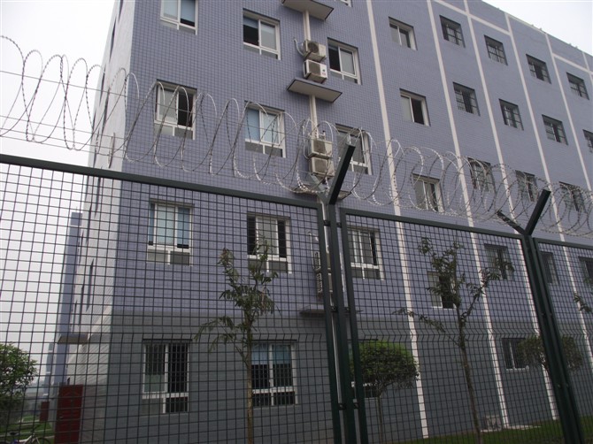 監獄鋼網墻是非常重要的安全防護設施,由焊接鋼網加蛇腹形刀刺網組合而成。產品具有結構新穎、堅固緊密、網面平整、網孔均勻、刀鋒銳利、防攀爬、抗腐蝕性強等特點。建設于監獄的內外墻地面及高墻之上,網墻內側或頂部加裝蛇腹形刀刺網,形成一道高不可攀、難以逾越的隔離障礙。配合高壓打擊電網、 各種監控報警設備確保監獄安全萬無一失。