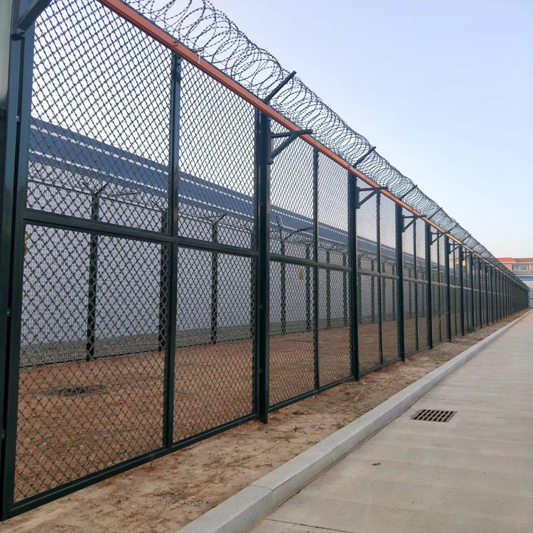 監(jiān)獄護(hù)欄主要是選用高強(qiáng)度的刀片刺網(wǎng)與一般防護(hù)網(wǎng)的別離 ,由V型支架立拄,增強(qiáng)型焊接片網(wǎng),安全防盜聯(lián)接件和刀片刺網(wǎng)組成。下面來 了解