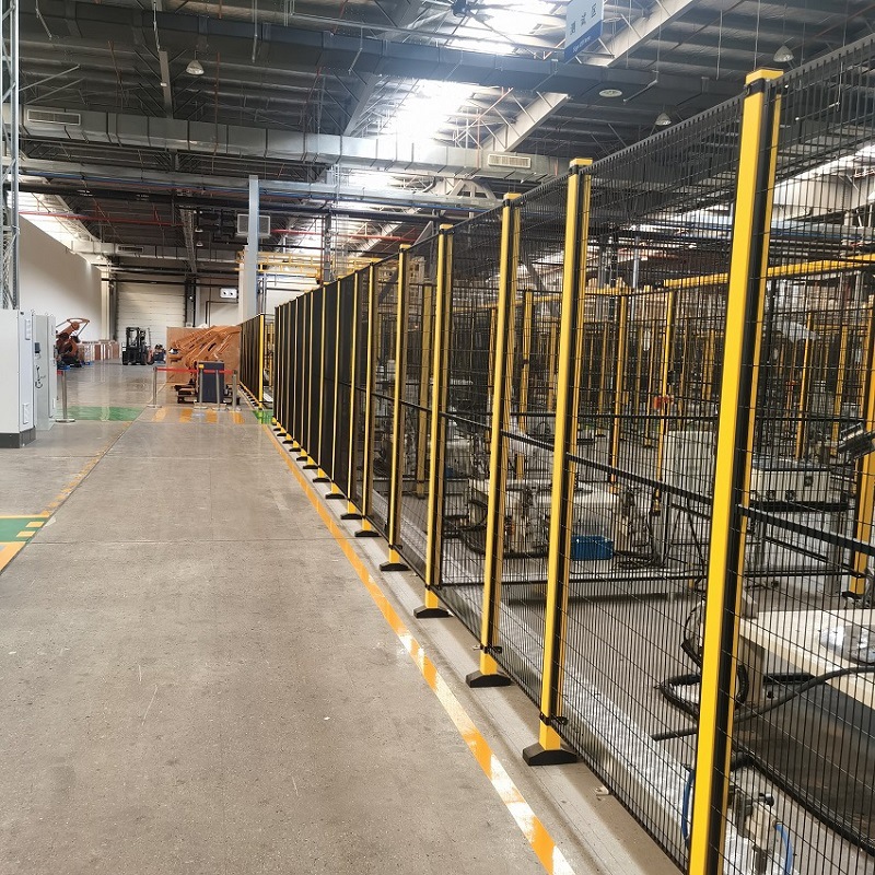 機器人安全圍欄,有區(qū)域隔離的效果,可以用圍欄劃分幾個區(qū)域,美觀整齊。出現(xiàn)故障時,還能起到隔離保護作用。多用警示黃色的型材及網(wǎng),提醒安全作用。也可對配件進行顏色定制,如杯型地腳,連接件等也可制作成警示黃。還可以根據(jù)客戶需求,安裝報警裝置, 在危險時發(fā)出報警的聲音??傊畽C器人安全圍欄是工廠車間必不可少的。
