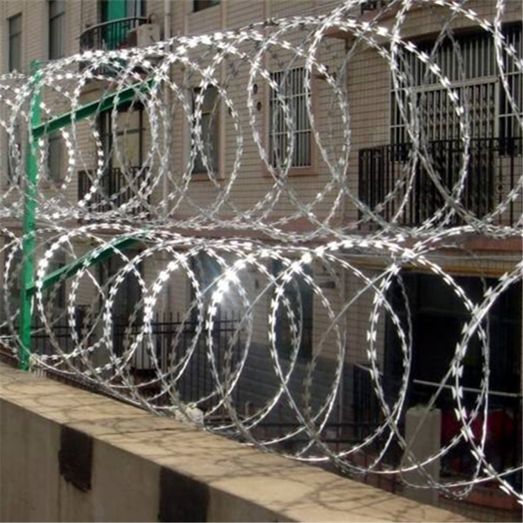 刀刺網(wǎng)在監(jiān)獄鋼網(wǎng)墻產(chǎn)品中有著至關(guān)重要的作用,它是具有尖利的刀片,共同的造型,像一條占據(jù)的大蛇,因此又稱刀片刺繩為蛇腹形刀刺網(wǎng),只需不小心碰到就會(huì)被尖利的刀片劃傷,環(huán)能握,腳不能攀爬,成為堅(jiān)決阻撓不合法分子逾越的防護(hù)墻,具有很強(qiáng)的恫嚇和阻撓作用,既漂又有十分實(shí)踐明顯的作用。
