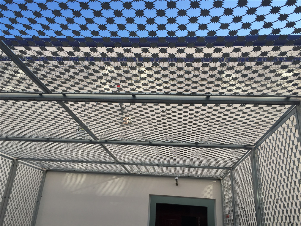 監獄梅花刺隔離網又叫沖壓刺隔離網、太陽花刺片隔離網,行業內簡稱梅花刺網。其特點為堅固牢靠、防止攀爬等。梅花刺隔離網一般用于監獄大門,探監門,人員通道兩邊的隔離網,由于其成本造價高,所以還沒有廣泛替代焊接式隔離網。1、梅花刺片:梅花刺片直徑不小于7.5cm(直徑6cm、7cm、8cm),刺片厚1.5mm,采用Q235低碳鋼板沖壓成型。梅花刺片用氬弧焊將梅花形刺片焊接在美格網的節點上,形成刺形保護,有效的防止了手握腳攀。
