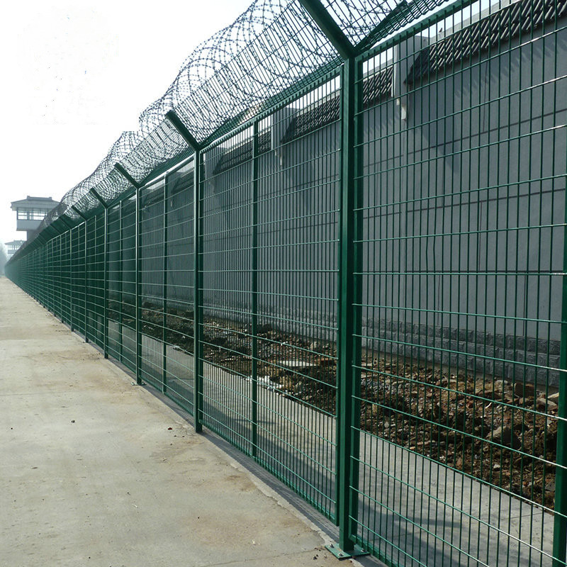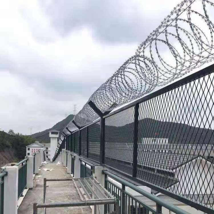 圍墻周界鋼網(wǎng)墻、焊接刀片隔離網(wǎng)工藝、焊接刀片刺圍網(wǎng)是非常重要的監(jiān)區(qū)安全防護(hù)設(shè)施,是由焊接鋼網(wǎng)加蛇腹形刀刺網(wǎng)組合而成。產(chǎn)品具有結(jié)構(gòu)新穎、堅(jiān)固緊密、網(wǎng)面平整、網(wǎng)孔均勻、刀鋒銳利、防攀爬、性強(qiáng)等特點(diǎn)。Y型架上邊架蛇腹型刀剌網(wǎng),由熱鍍鋅鋼板或不銹鋼薄板沖壓出尖利的刀片狀,高張力鍍鋅鋼絲或者不銹鋼絲做芯線組合而成的阻盡器材。刀刺直徑采取50-60厘米,刀型整潔、刀片鋒利、排列均勻致密、連接堅(jiān)固、防腐才能強(qiáng),可能達(dá)到防攀越、防拆卸更高保險(xiǎn)等級。