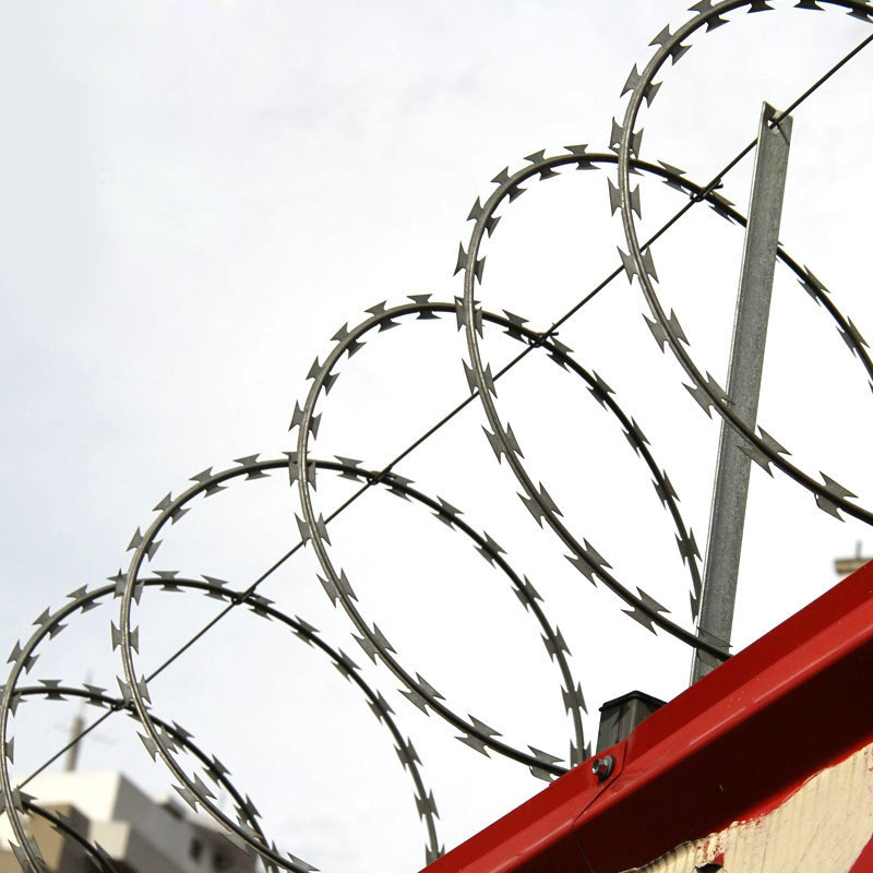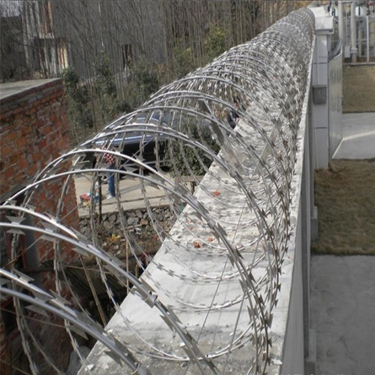 世界各國(guó)已將不銹鋼刺繩用于軍事重地,牢獄刀片刺繩防護(hù)網(wǎng),機(jī)關(guān)單位,銀行,以及生活小區(qū)圍墻,私人住宅,別墅的圍墻,門窗高速公路,鐵路護(hù)欄以及邊境線等用來防護(hù)保安。